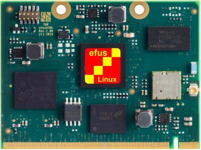 efus™A7UL-V4-LIN NXP i.MX 6ULL ARM Cortex-A7, 512MB RAM, 512MB Flash, 4GB eMMC, 2x Ethernet, 2x CAN, Audio, WLAN, BT, Touch, RGB, 0°C - +70°C, 5V Versorgung, Linux Buildroot/Yocto Bestellnr.: efusA7UL-V4-LIN |