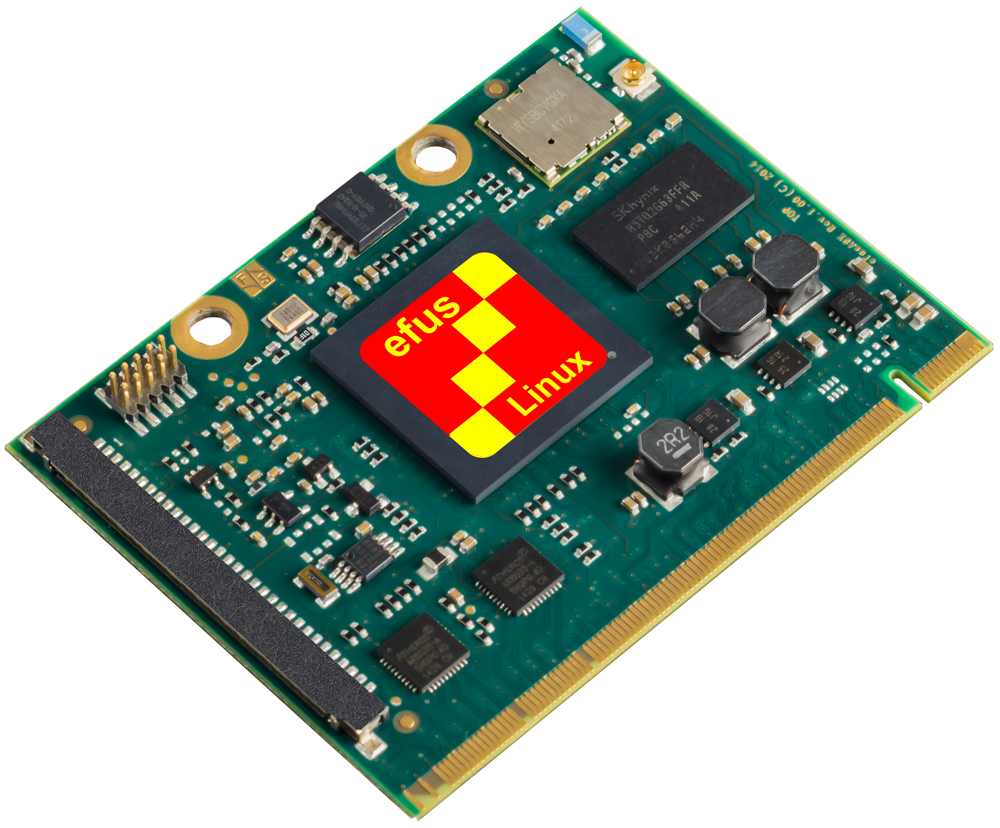 Highlights of the new efus™A9X are 2x Gb Ethernet (higher data throughput in comparison to the i.MX 6), interface for analog cameras, WLAN and Bluetooth.