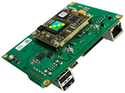 Bietet Anschlussmöglichkeiten für Ethernet, USB Host, USB Device, 2x RS232, SD Karte, I²C, SPI, Audio (Line In, Line Out) und E/A-Ports.