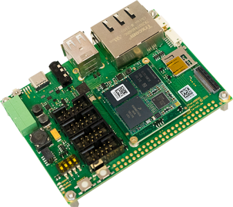 Zum Anschluss von USB 3.0 (OTG), SD-Karte, Serielle, I²C, Ethernet, CAN, mPCIe, Audio (In/ Out/ Mic/ Headphone), 2x MIPI-CSI und MIPI-DSI / LVDS.
