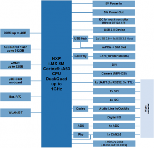 Der Vorteil von Single Board Computern (SBC) ist, dass sie ohne Basisboard eingesetzt werden können und sich so besonders für schnelles "Time-To-Market" eignen. Asymmetrisches MultiprocessingDie armStone™MX8M basiert auf der Multimedia CPU i.MX 8M von NXP Der Vorteil dieser asymmetrischen Prozessorarchitektur besteht in der strikten Trennung der echtzeitrelevanten Aufgaben - beispielsweise eines Regelungsalgorithmus - vom übrigen System. Der NXP i.MX 8M Prozessor bietet eine branchenführende Audio-, Stimm- und Videoverarbeitung und kommt somit für ein breites Spektrum an Anwendungen in Frage. Dieses leistungsstarke Modul im PicoITX Formfaktor eignet sich besonders für komplexe Multimediaaufgaben und ist ideal für Applikationen mit anspruchsvoller Grafik in der Gebäudeautomatisierung, für alle Arten von HMI in Industrie und Medizintechnik, sowie POS und POI Terminals geeignet. Zahlreiche SchnittstellenDie armStone™MX8M ist mit bis zu 8GByte LPDDR4 RAM und bis zu 1GB SLC NAND Flash und bis zu 32GB eMMC ausgestattet. |