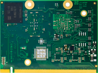 The efus™MX8MP is another compact and powerful module in the efus™ form factor. Easy baseboardTogether with a simple baseboard (EasyLayout), the efus™ standard, which measures only 47 x 62mm, fits into compact packages. NXP i.MX 8M PlusThe i.MX 8M Plus extends the scalable product range of the i.MX 8 series. The i.MX 8MP with ARM Cortex-A53 and -M7 includes common subsystems and architectures and offers high integration capability for graphics, video, image processing, and audio. It is the ideal partner when security and performance efficiency is key. ➜ more information about the NXP i.MX 8M Plus applications processor |